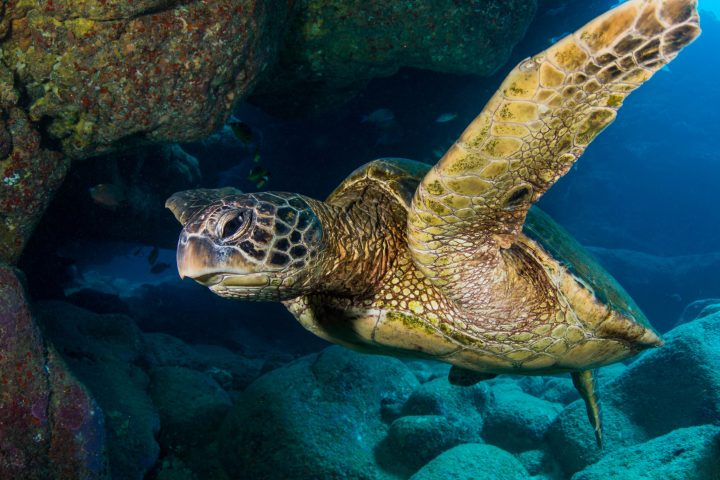 Koloa Landing is nutrient rich and hosts a wide variety of marine life! Oh, and did I mention turtles!? Another highlight of this site is the huge variety of moray eels! Don’t be surprised if we point out 5 or 6 different species on any give dive. The snowflake and dragon moray are rarely seen on our boat dive sites but can be found here on a daily basis! Octopus, blue spotted cornet fish, frog fish, orange mouth lizard fish, and endemic tropical reef fish are also fun to point out to our customers! This dive site also has a rich history as it used to be the 3rd largest whaling port in the Hawaiian islands!